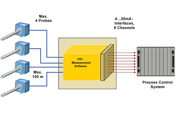 Parsum’s optional 4-20 mA interface board streamlines the transfer of particle size data from the probe to a centralized control system, for automation or data display. Eight channels allow interfacing with four probes, each installed as far as 100 m away from the analyzer PC.