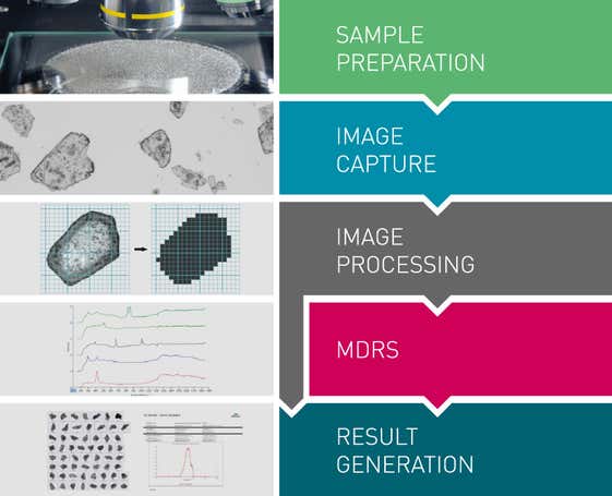 Das Messverfahren von Morphologi 4-ID lässt sich in fünf Abschnitte unterteilen: