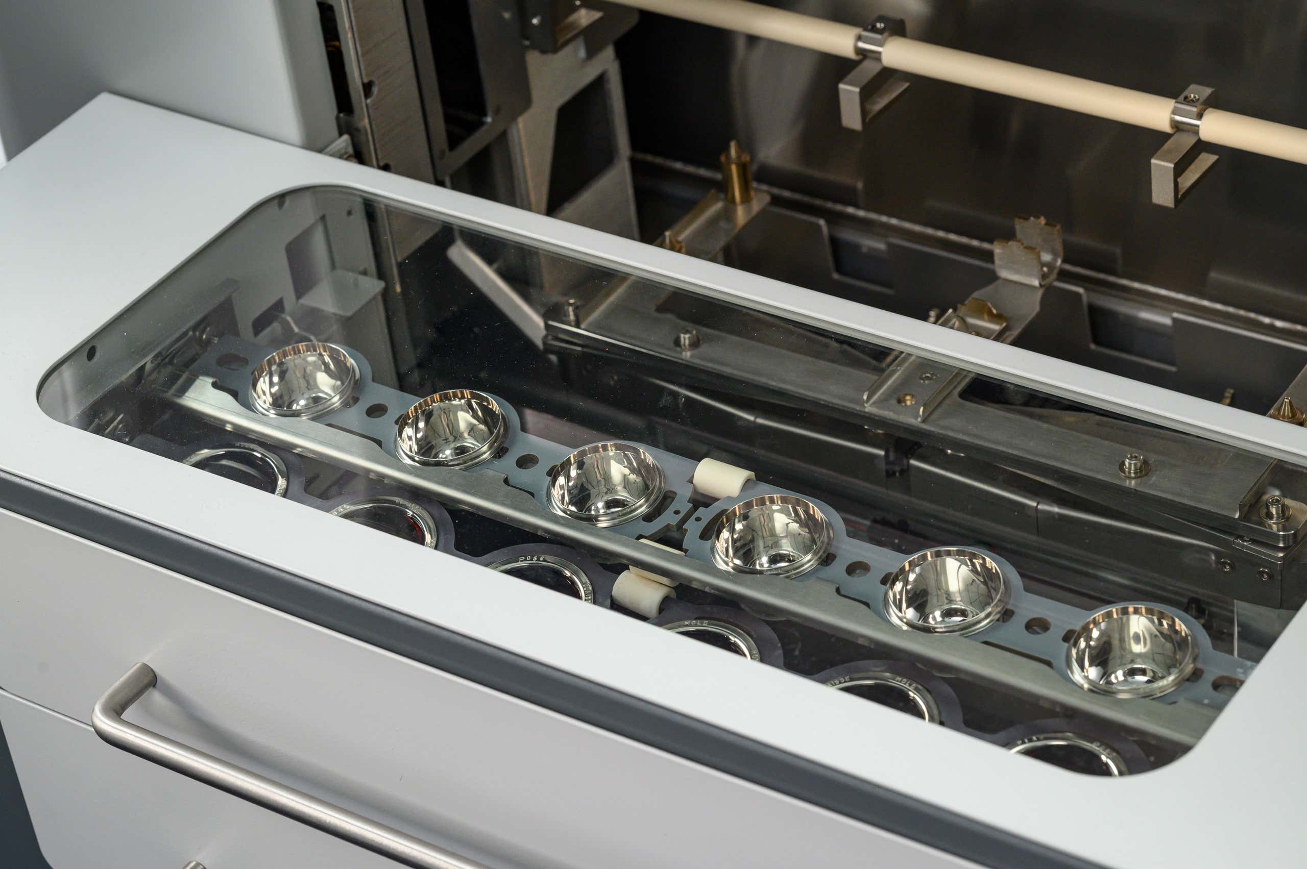 De cette façon, le chargeur de plateaux vous permet de minimiser les temps d'arrêt dans la chambre de chauffe et d'optimiser votre rendement, sans avoir besoin d'espace supplémentaire sur la paillasse. Le deuxième cycle de fusion peut également démarrer même si l'opérateur n'est pas à proximité de l'instrument pour charger l'ensemble suivant. Le chargeur de plateaux en option est donc idéal pour les responsables de laboratoire qui doivent s'assurer que le temps de travail de leurs opérateurs est utilisé efficacement.
